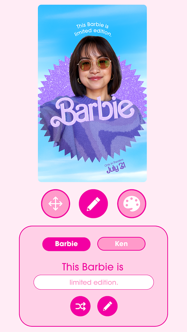 The message of the Barbie marketing campaign was clear – everyone is Barbie (or Ken!). To assure that the launch of the Barbie character posters made a huge splash on social, we created the Barbie Selfie Generator, a hugely impactful extension that expands on the character posters and allows users to make it their own. Millions of people used this site to create custom memes, quickly making it a viral sensation.